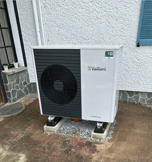 Zwei Betonfundamente für die Installation von Wärmepumpen